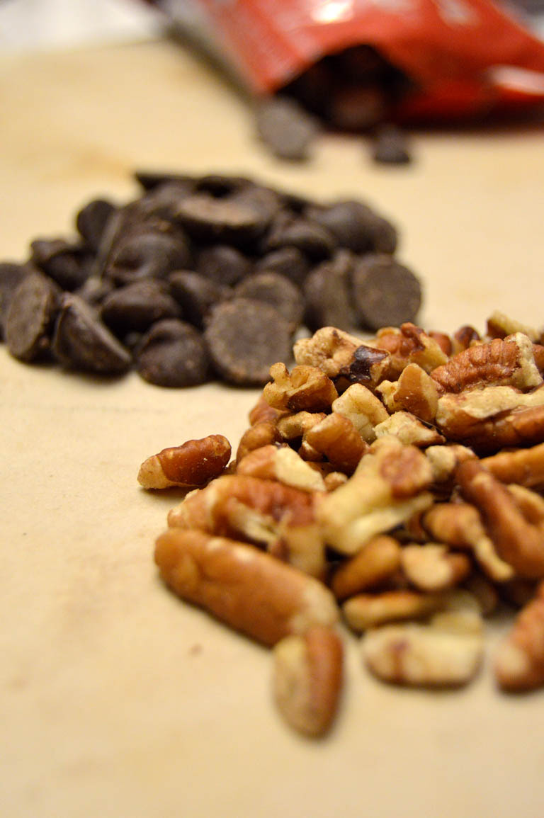 Since there were a few bananas sitting on the countertop getting soft and really dark, I didn’t want to throw them out; I decided to make banana bread. With all the bananas I threw out, I probably would’ve been able to make 2 or 3 loaves a week for the past 2 years and started a banana bread business! This recipe is from my mother’s recipe stash, but I added a couple things to it: chocolate chips and nuts. Now FYI: I normally don’t include nuts in my food, and I have a peanut allergy anyway. The only time you’ll ever see me eat anything with walnuts or pecans or almonds is if they’re chopped very fine; I just can’t do whole or large pieces. Having leftover chopped pecans, I decided to throw them in with the chocolate chips; just a cup, and I fell in love with this bread. The combination of the two make this bread less boring, and the chocolatey sweetness is just the perfect touch, along with the banana flavor. This recipe should definitely be on your must-bake list!!