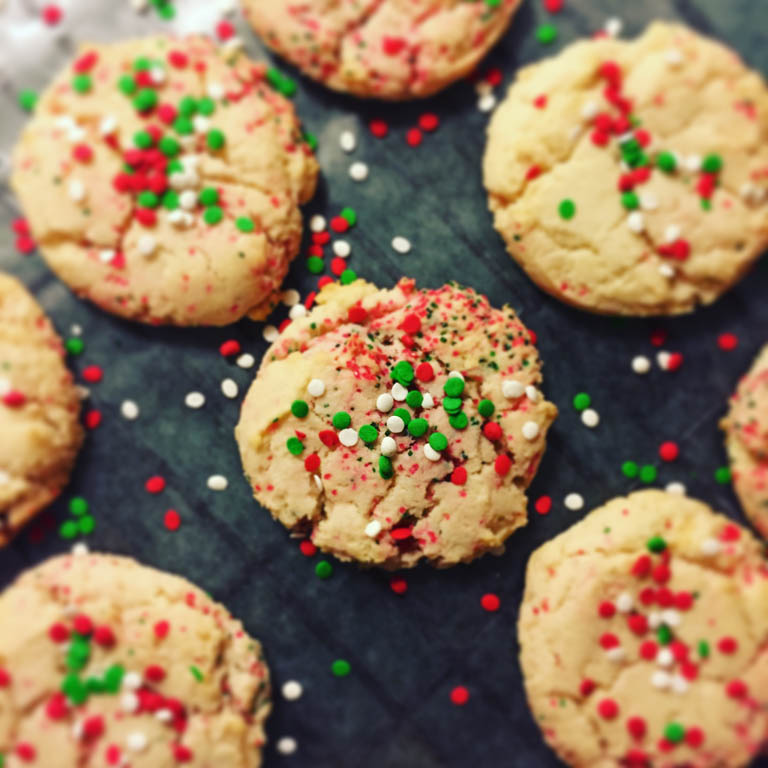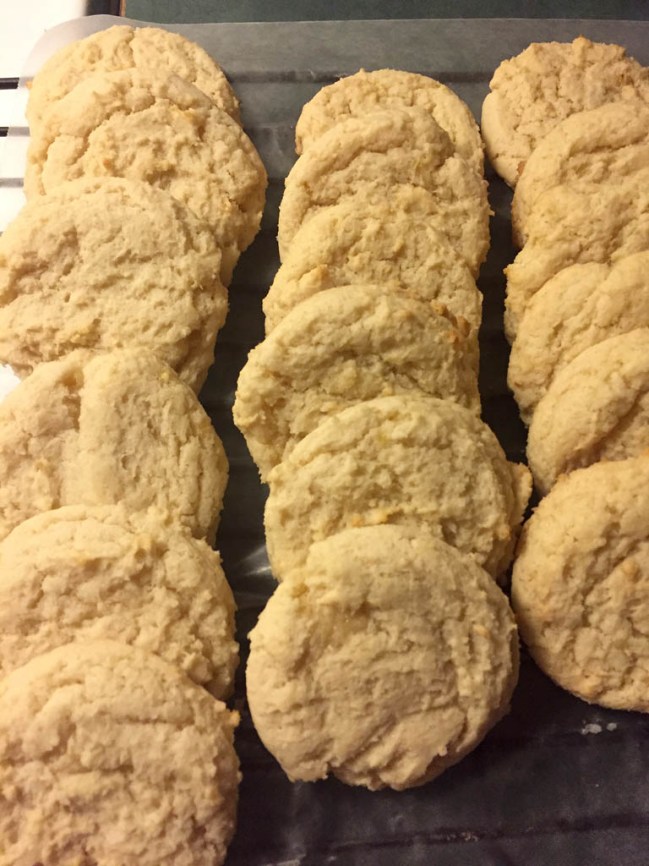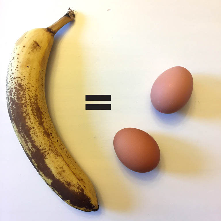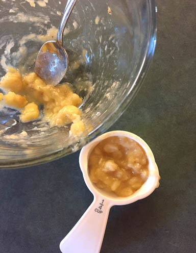 I never used bananas as an egg substitute; it was always applesauce. And since I had no applesauce either, I grabbed a banana, smashed it in a small bowl, guess-timating that it made two 1/4-cups for each egg. I folded the smashed banana into the mix and then added the dry ingredients. The consistency was about the same for this sugar cookie dough. As for the taste, it’s sugar cookie dough with a hint of banana! Another bonus to this recipe is that you can safely eat the cookie dough, because…yep, no eggs!