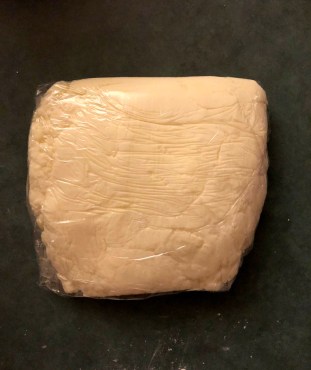 – Once cream filling is mixed, scoop out onto a long piece of plastic wrap. Roll up the filling with the plastic wrap, flattening it out a little as you wrap it.