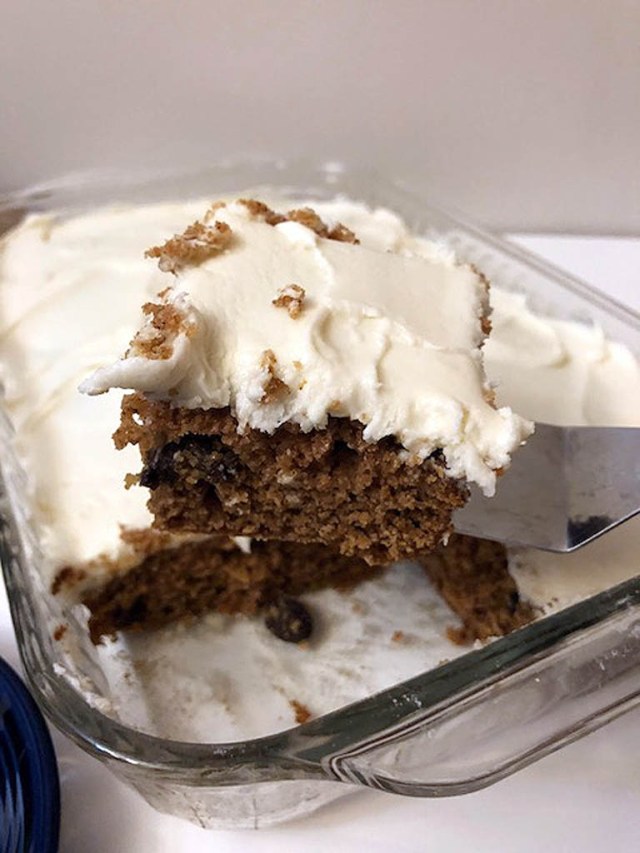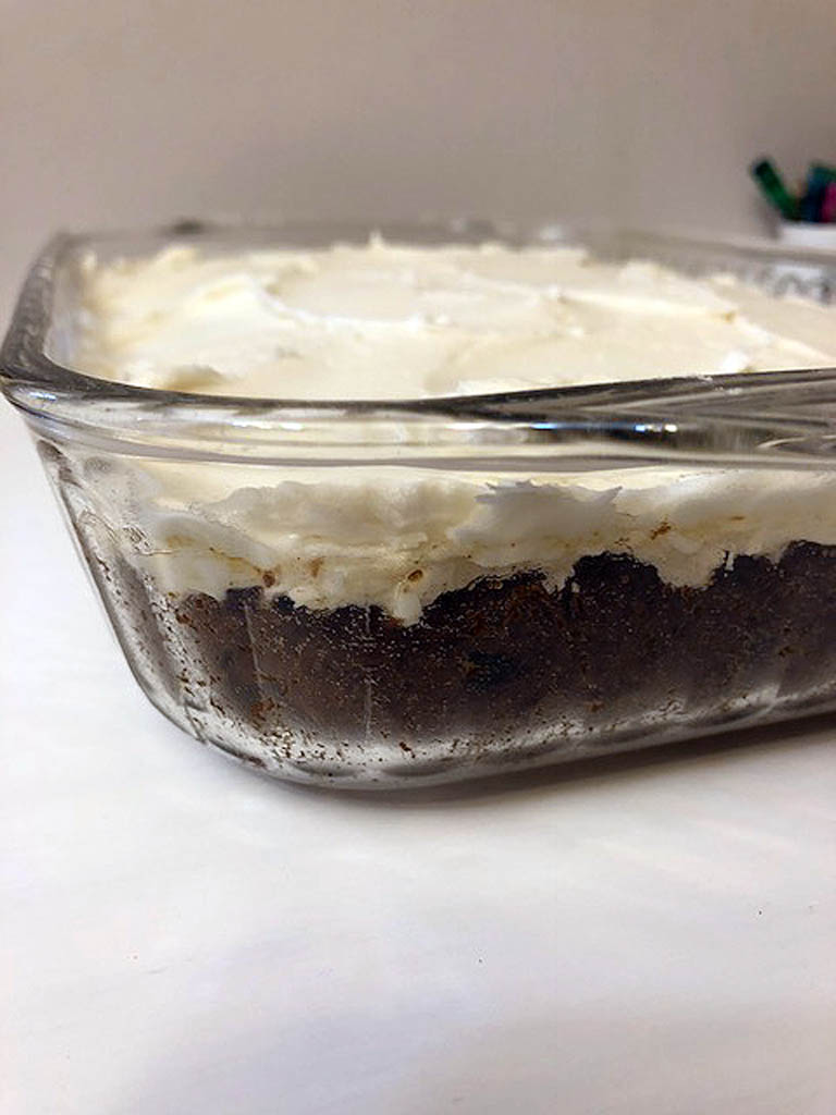 • Pour batter into the prepared baking dish, and bake for 35-40 minutes. Cool and frost if desired.
